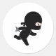 Cute cartoon ninja dressed in black is running while holding a throwing star.