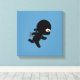 Tiny Ninja Running on Blue Canvas Print