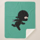 Tiny Ninja Running on Dark Green Sherpa Blanket