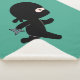 Cute cartoon ninja dressed in black is running while holding a throwing star.