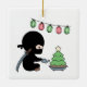 Tiny Ninja Watering Christmas Tree Ceramic Ornament