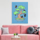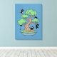 Tiny Ninjas in Bonsai Tree on Blue Canvas Print