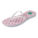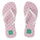 Celebrate summer with our super cute pink and green palm tree print flip flops! Monogrammed design features an allover pattern of tiny tropical palms in green and brown on a preppy pink background. Personalize with your single initial monogram at each heel on a coordinating emerald green badge. If not monogramming, simply delete the sample initial and click "clear" to remove the green square.