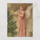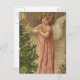 Tiny Pink Garbed Angle At Christmas Tree Holiday Postcard