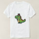 A charming and vibrant 8-bit pixel art illustration of a green Tyrannosaurus Rex wearing a small black top hat with a red band. This cute, retro-inspired dinosaur graphic features bright orange accents and clean, crisp pixels. It is designed specifically as an isolated "pocket" graphic for apparel, perfect for t-shirts and hoodies.