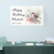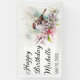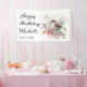 Women's birthday party banner with the painting of a cute little sparrow sitting among blossoms in the branches of a cherry tree. Personalized with the name of the guest of honor. Contact me for assistance with your customizations or to request additional matching or coordinating Zazzle products for your celebration.