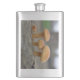 This awesome flask features a beautifully detailed photograph of 4 small yellow toadstools emerging from a log in a park. The background is blurred and the fungi are photographed level so you see the world from their perspective.