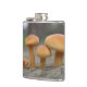 This awesome flask features a beautifully detailed photograph of 4 small yellow toadstools emerging from a log in a park. The background is blurred and the fungi are photographed level so you see the world from their perspective.