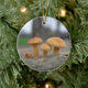 This pretty ornament features a beautifully detailed photograph of 4 small yellow toadstools emerging from a log in a park. The background is blurred and the fungi are photographed level so you see the world from their perspective.