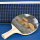 This awesome Ping Pong Paddle features a beautifully detailed photograph of 4 small yellow toadstools emerging from a log in a park. The background is blurred and the fungi are photographed level so you see the world from their perspective.