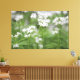 Wonderful tiny white floral canvas art print. Colors are bright green, white and gray.