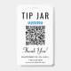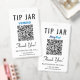 Make tipping effortless and modern with this custom QR code badge, designed for bartenders, DJs, service professionals, and small businesses who want a simple, convenient way to accept digital tips. Featuring a “TIP JAR” header and easy-to-scan QR codes for Venmo and PayPal, this clean layout ensures customers can quickly show their appreciation -- no cash needed. The elegant “Thank You!” script adds a warm, professional touch, while your business name, phone number, and website help reinforce your brand. Compact and versatile, this badge-style sign is perfect for bars, events, salons, food vendors, and mobile services. Whether you're behind the bar or on the go, this sign helps you increase tips while offering a seamless, cashless experience.