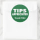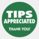 Tips appreciated sticker for the service industry. Customers sometimes do not know when it is appropriate to tip, and these stickers placed in your place of business or on business materials will let them know that tipping is appreciated and remind them to tip. Perfect for any personal service business: waiters and food service, drivers, bartenders, hair stylists, contractors, home repair, manicurist, massage therapist, dog groomer, or tattoo artist. Promote tipping etiquette!