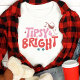 Get ready to bring the holiday cheer with this fun "Tipsy & Bright" shirt! Featuring bold and playful pink and red lettering, festive stars, and a wine glass, this shirt is perfect for any holiday party. Whether you're enjoying a glass of wine or spreading joy with friends, this stylish and humorous shirt will make you the life of the party. It's ideal for holiday gatherings, gift exchanges, or just adding some lighthearted fun to your festive wardrobe!