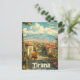 A vibrant and colorful depiction of Tirana, the capital of Albania, showcasing its blend of historical and modern architecture. The design features notable landmarks, bustling streets, and lively cityscapes, all illustrated in a nostalgic, retro style. This artwork captures the dynamic spirit and unique charm of Tirana, inviting viewers to discover its diverse cultural heritage.