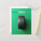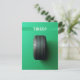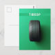 A green postcard with a car tire illustration and the customizable funny text "tired?". This is a fun postcard with a word-play humor that you can send to your friends before holidays to invite them for a vacation.