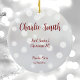 Lightweight, smooth, pure white ornament with nice sheen. Perfect size to be seen from across the room ... and to attract closer inspection! Price was great for ordering enough for the whole family! Clear, bold black design just as requested. Matches the order exactly. Just so nice!