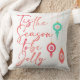 Spread holiday cheer with this festive pillow in shades of pink and apricot.
