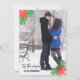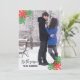 Tis the season to be married! Christmas holiday snowflakes in red and green with modern script typography. Photo template via Pixabay licensed under CC0 and must be replaced with your own photo
