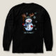The front of the shirt features our charming, antlered snowman, ready for winter festivities. Above him, the classic holiday phrase "TIS THE SEASON" sets the mood, while below, the playful question "Cute or Ugly? VOTE!" invites everyone to join in the fun. On the back, our jolly snowman reappears with the delightful wish: "Let it snow!"