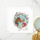 Capture the magic of the season with this heartwarming illustration of a girl lovingly petting a horse's nose, while a charming chickadee perches atop the horse's head, gazing down affectionately. The scene is framed by a festive holiday wreath adorned with seasonal flora, perfectly setting the tone for the joyous message: 'Tis the Season for Joy and Wonder. Jenn Steffen Art.