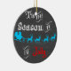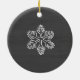 Lightweight, smooth, pure white ornament with nice sheen. Perfect size to be seen from across the room ... and to attract closer inspection! Price was great for ordering enough for the whole family! Clear, bold black design just as requested. Matches the order exactly. Just so nice!