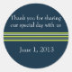 A band of green and white stripes pop on this navy blue sticker. These are a great idea for party favors.