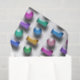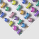3D buttons, in rectangles and circles, are shown in multiple pastel colors. Design replicated multiple times on a diagonal, across the surface. Yellow, orange, pink, magenta, turquoise, blue, purple