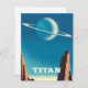 Titan & The ringed planet Saturn Vintage Style Space Art.