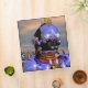 Artistic ,colourful and bright science fiction image in yellow,green,brown,white colors. Titan cyborg from Hyperion with his vibrant reflective chrome metallic carapace in a surreal environment with pyramids ,hot Sun,desert similar to an Egyptian landscape,animation frame from 3D movie Hyperion World . It is also a beautiful gift for Christmas, Holidays and special occasions.