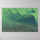 titanic under water, green-blue, poster