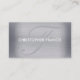 This business card has a brushed titanium appearance featuring a monogram front. Add your name and then your initial in the background for added effect. The backside is customizable with your own contact information.