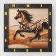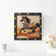 Title: Desert Sprint Carved Wood Arabian Timepiece Square Wall Clock