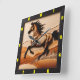 Introducing a truly unique and captivating piece for equestrian enthusiasts and collectors alike: a one-of-a-kind wall clock featuring a stunning depiction of an Arabian horse in full sprint across the golden sands of a desert landscape. This exquisite clock is not just a timepiece; it is a work of art, meticulously crafted to resemble carved wood, complete with deep textures and intricate grain patterns that evoke the natural beauty of the desert. The clock is framed by a sleek ½-inch flat black wooden border, enhancing its visual appeal while providing a striking contrast to the rich, charred textures of the embedded wood. The rugged burn marks in shades of red, gray, and black add depth and character, making this clock a standout addition to any home or office decor. With its lifelike representation of the Arabian horse, this clock is sure to be a conversation starter, blending functionality with artistic expression in a way that is both timeless and contemporary.