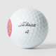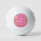 Custom name sample is shown with a gold laurel wreath print on a hot pink background color, shown is the Titleist Pro V1 Golf Balls.
