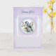 This delicate card features a pretty titmouse surrounded by wildflowers, like a small painting of soothing nature. The lilac and soft blue tones create a gentle, luminous, and poetic atmosphere.