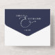 This all-in-one minimalist wedding invitation features elegant typography on a navy blue background. The invitation includes a perforated RSVP card that can be individually addressed or left blank so you can handwrite your guest's address details. Designed by Thisisnotme©