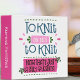 "To knit or not to knit - now that's just a silly question" is the funny knitting phrase on this knitting pattern folder. The template is set up for you to add your own custom text to the spine (if you wish). The knitters quote is written in playful typography and decorated with running stitch, retro petals and simple flowers. The color palette is blue, pink and green. Please browse our store for matching and coordinating items.