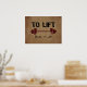 This elegant grunge design says "To Lift...that is all" with a set of barbells between. Perfect for bodybuilders, weightlifters, powerlifters, personal trainers, gym and P.E. Instructors and so many more.