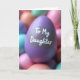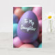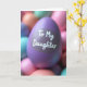 Designed with a single smooth egg-shaped object centered in the scene, the artwork features a speckled amethyst-purple surface that feels gently cherished. Soft, diffused light rolls across its curves, creating quiet gradients that make the centerpiece look tender and cared for, like a small gift set aside for someone close 🌷. A small oval label sits on the front of the egg, holding the words “To My Daughter” in white lettering against a darker, matte patch. The message placement is neat and centered, drawing your eye in the way a loving note does when it’s meant for just one person. Around it, a shallow focus turns the background into rounded, blurred shapes that resemble softly scattered eggs, adding a cozy, affectionate mood 🐰. Those out-of-focus colors drift through pastel pink, calm blue, gentle peach, and soft mint, like a quiet spring setting. The purple surface shows fine speckles and a faint texture, while the background remains a smooth, colorful blur.