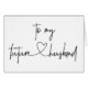 This beautiful calligraphy wedding card is the perfect way to send a special message to your husband to be on your wedding day.
