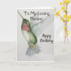 Celebrate a happy birthday with your loving partner by giving an elegant hummingbird greeting card. Created from my original watercolour painting, the lovely little bird and flower image will brighten the day for birdwatchers, gardeners and nature lovers. The special woman in your life will love the pastel colours of cream, pink and teal green painted in the soft realistic style of charming botanical art.