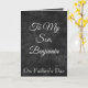 The perfect card from a mother to her son on Father's Day, this design features an amazing black background with "To my son, Benjamin" "On Father's Day". The inside has a lovely message displayed. Personalize for your son today!