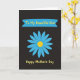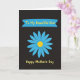 This card features a deep black background that makes the central flower stand out like a spotlight. In the middle, a stylized bloom shows many long azure-blue petals spreading outward from a sunny yellow center, like an affectionate hug captured in simple shapes ❤️. Near the top, a blue ribbon banner with pointed, swallowtail ends stretches across the design. Inside that banner, the words “To My Beautiful Omi” appear in rounded yellow lettering, centered and easy to read. Below the flower, the message “Happy Mother’s Day” is set in matching yellow text, placed neatly and centered to balance the layout 🌼. The flat, solid colors and sharp edges keep everything crisp and modern while the warm yellow against cool blue suggests a tender, caring bond. The blue banner sits above the flower, and the yellow greeting sits below it, framing the bloom on the black field.