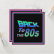 Square pearl shimmer invitation with the text “Back to the 80s” in gorgeous blue, green, and fuchsia lettering on black. Back has a black, blue, green, and fuchsia border with coordinating space for your party details. See matching envelope, favor box, label and wrapping paper. See the entire Tubular 80s Invitation collection in the INVITES | Invitations & Cards section.