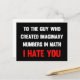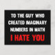 To the guy who created imaginary numbers I hate you.| sarcastic math saying | sarcasm lover sarcastic gift, funny quote, funny sarcasm, funny saying, humor, joke, sarcasm, sarcasm sayings, sarcastic, sarcastic comment, sarcastic joke, sarcastic phrases, sarcastic quote, sarcastic sayings