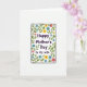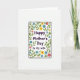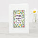 This greeting card features a white background with a tall rectangular panel in the center, outlined in a dark line with softly rounded corners. Inside the panel, the words “Happy Mother’s Day to My Wife” sit prominently in a rich purple font, centered and easy to read. The lettering has a slightly hand-drawn look that feels like a gentle note shared between partners ❤️. Around the panel runs a full border of simple flowers and leaves, arranged like a continuous garland that wraps the message in care. Yellow blooms, calm blue petals, and soft magenta-red flowers mix with fresh green leaves and thin brown stems, creating a cozy, affectionate garden feel 🌼. The floral shapes are simplified with light texture hints, as if drawn to keep the focus on the message while still adding warmth. The border stays evenly spaced so the central panel feels hugged by the flowers rather than crowded. Small clusters of blossoms appear at the corners and along the sides, with green leaves tucked between petals and stems looping neatly around the frame.