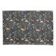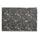 This whimsical design features terracotta toadstool mushrooms on a dark navy blue background with forest berries and fauna.