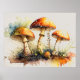 Watercolour style illustration of cute little toadstools all in a cluster.