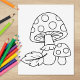 Toadstool Mushrooms Coloring Page Rubber Stamp
